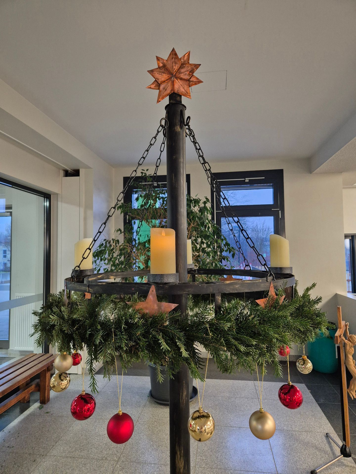 Am Donnerstag, 18.12.2025, fand in der Kirche St. Jakob ein gemeinsamer vorweihnachtlicher Gottesdienst statt. Religionspädagoge Armin Hamann begrüßte die Schulgemeinschaft auch im Namen von Stadtpfarrer Pater Jens Bartsch und Pater John, Rektorin Irene Träxler und seiner Kollegen Susanne Fink und Michael Trinkerl.